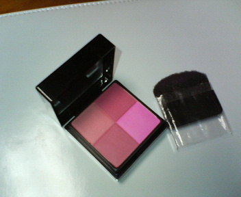 ジバンシイのチークです。4色がセットインされたお洒落な見た目。スタイリッシュなパッケージ。そして、ハケもセットされてます。チークの下にパカリと開く部分があって、そこにハケをセットできます。機能的。